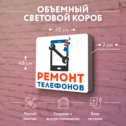Световая вывеска «Ремонт телефонов» Объемный короб с подсветкой Лайтбокс квадратный: сравнение цен, характеристики, фото, актуальное наличие и цены.