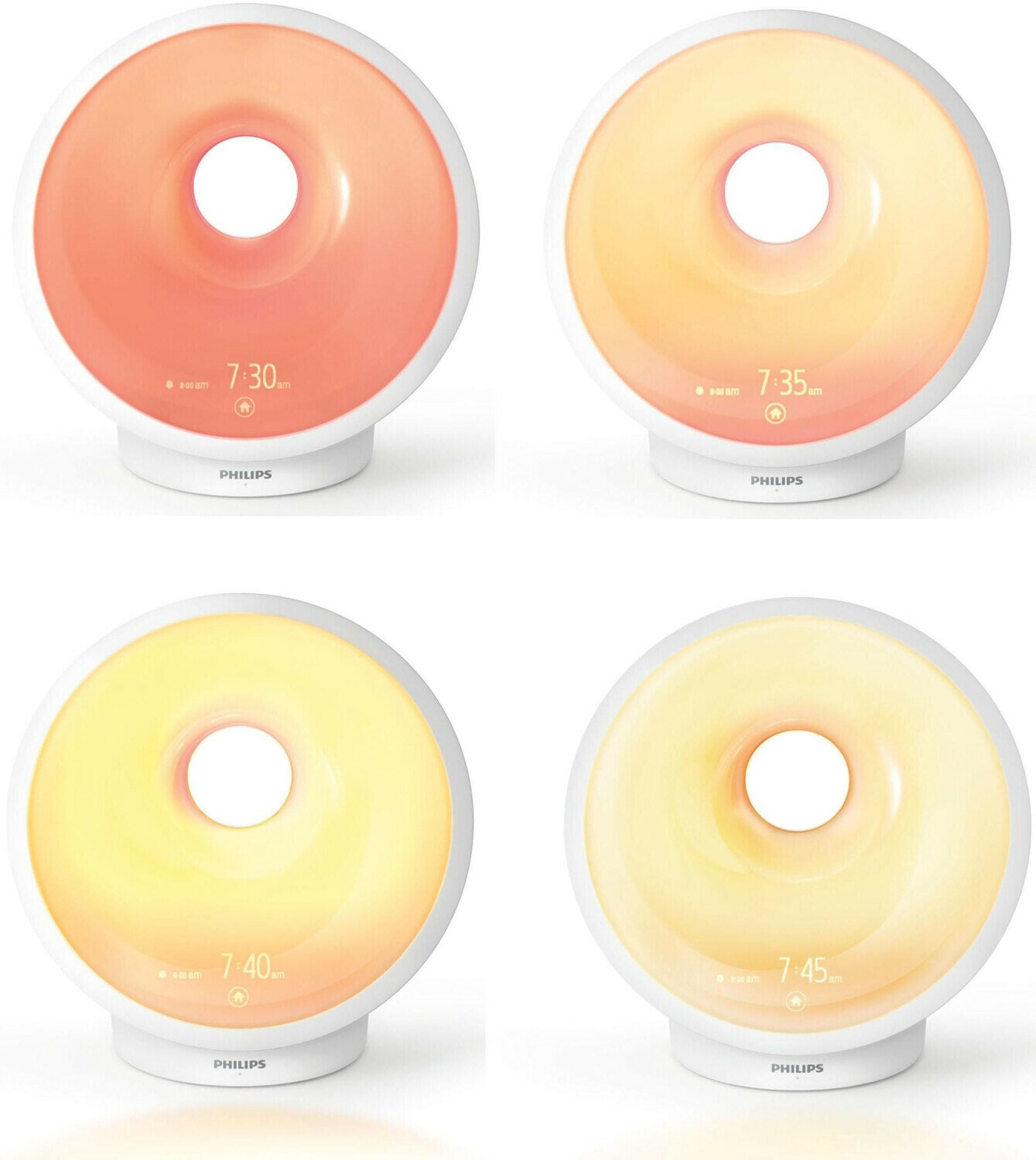 Начинайте утро мягко и с комфортом благодаря световому будильнику Philips HF3671/01. Устройство имитирует естественный рассвет, постепенно увеличивая яркость света от нежного красного через теплый оранжевый к дневному белому. Такой плавный переход помогает вашему телу естественно пробудиться, а приятные звуки природы или любимая радиостанция сделают процесс еще более гармоничным.