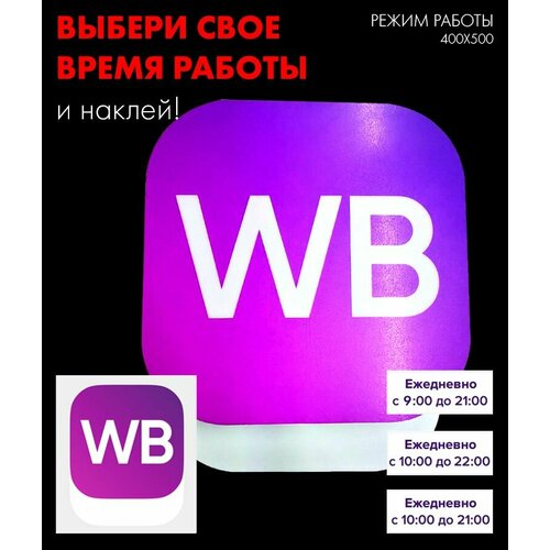 Блок питания внутри режима работы. Табличка настенная Режим работы для пункта выдачи заказов и товаров, указаны часы работы точки (на выбор). В коробке вы найдете наклейку с тремя вариантами времени. Вывеска интернет-магазина указывает, когда открыты пункты выдачи. Режимник 40х50 см из пластика ПВХ 3мм и акрила с подсветкой для входных групп фасадов новых ПВЗ. Возможен монтаж на стену