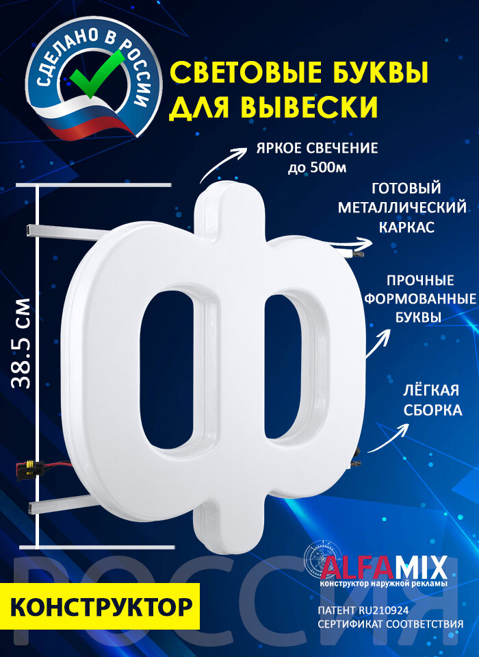 Купить Световые объемные буквы для вывески внутренней и внешней рекламы / Буква Ф 38,5 см с доставкой по всей России. Световые объемные буквы для вывески внутренней и внешней рекламы / Буква Ф 38,5 см: сравнение цен, характеристики, фото, актуальное наличие и цены.
