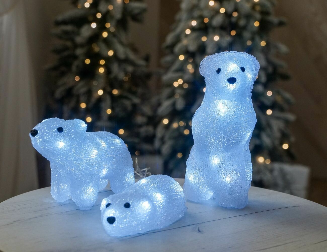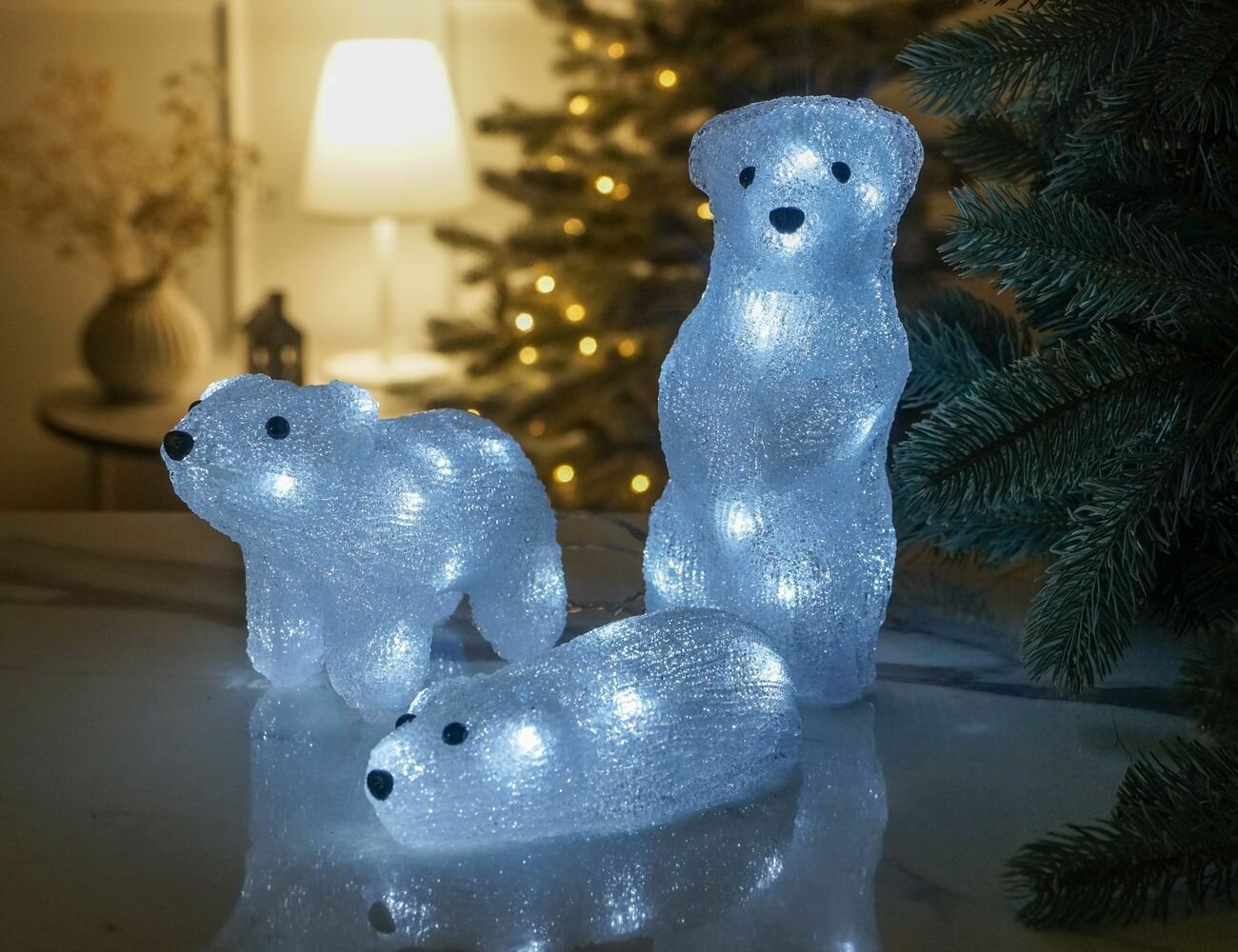 Купить Светящиеся акриловые фигурки полярное семейство, белые, 40 холодных белых LED-огней, 26 см, 3 шт, таймер, батарейки, уличные, Kaemingk (Lumineo) 491082 с доставкой по всей России.