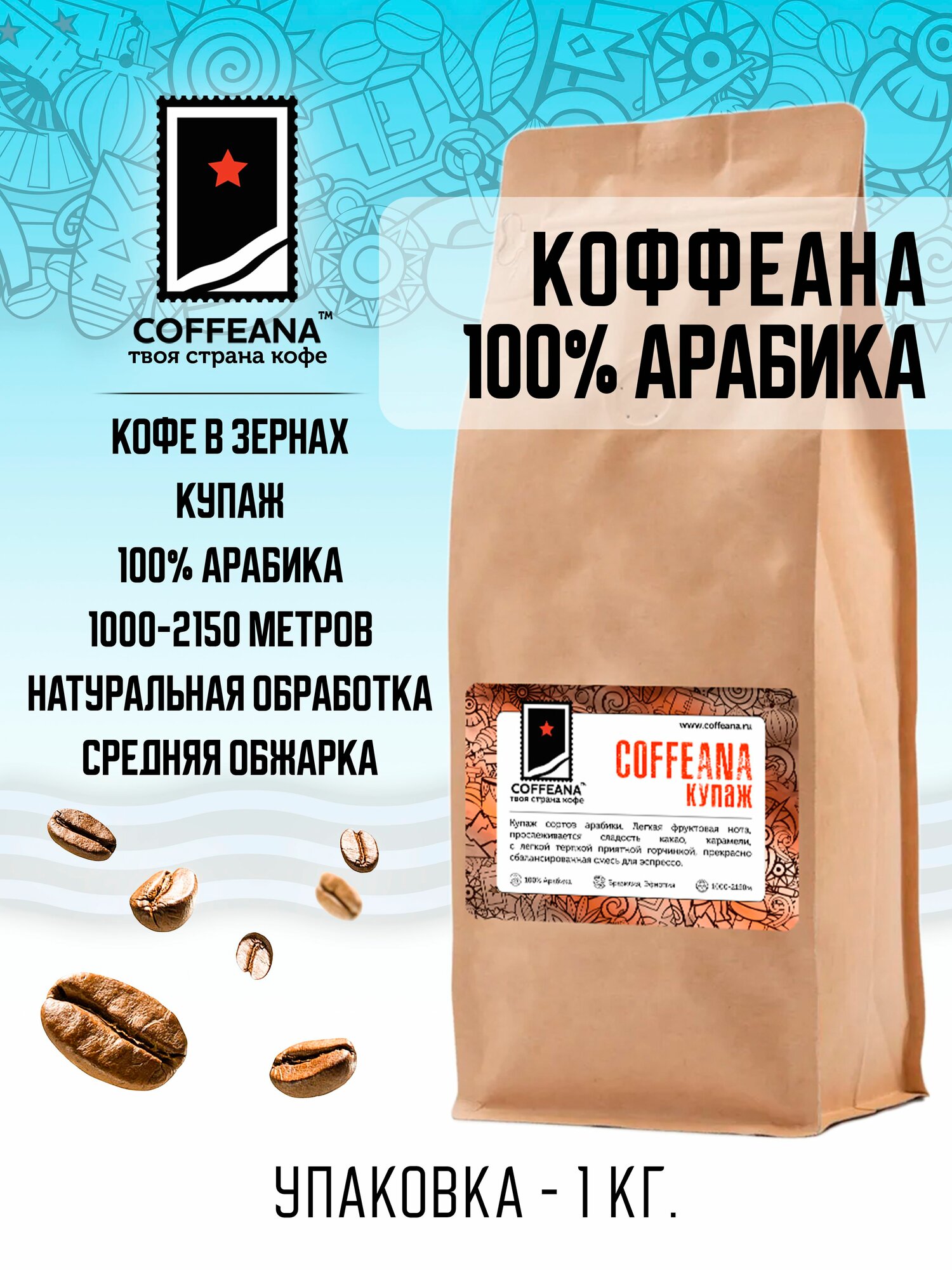 Купить Свежеобжаренный кофе COFFEANA коффеана (купаж 100% арабика) в зернах 1000 г с доставкой по всей России. Свежеобжаренный кофе COFFEANA коффеана (купаж 100% арабика) в зернах 1000 г: сравнение цен, характеристики, фото, актуальное наличие и цены.