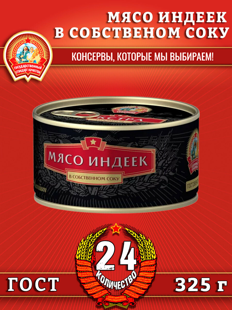 Мясо индеек в собственном соку, экстра премиум ГОСТ, Сохраним традиции, 24 шт. по 325 г: сравнение цен, характеристики, фото, актуальное наличие и цены.