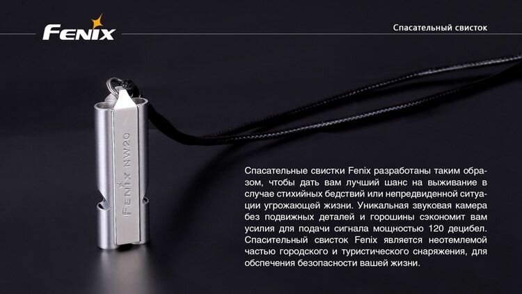 Купить Свисток Fenix NW20, громкость до 120 дБ, на 30% меньше усилий для свиста, частота звука 3-4 кГц, нержавеющая сталь с доставкой по всей России.