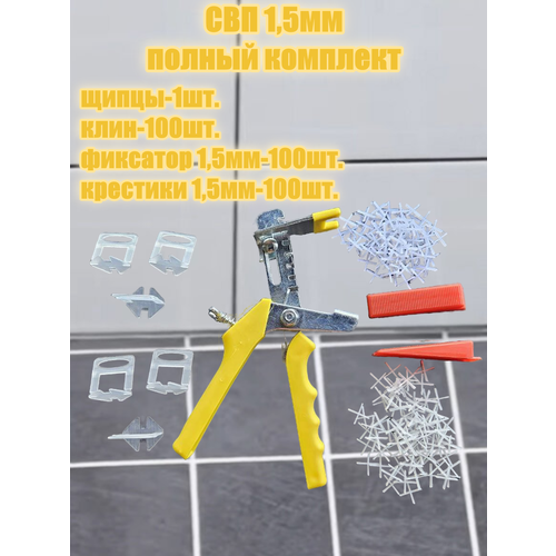 СВП 1,5мм полный комплект 4в1 щипцы, клин, фиксатор, крестик - это набор инструментов для выравнивания плитки, который станет незаменимым помощником при укладке плитки.