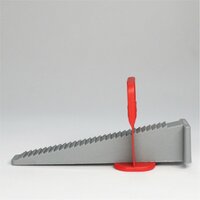 Зажим имеет яркий красный цвет, что делает его легко заметным на любой поверхности. Это облегчает работу и позволяет избежать ошибок при укладке.