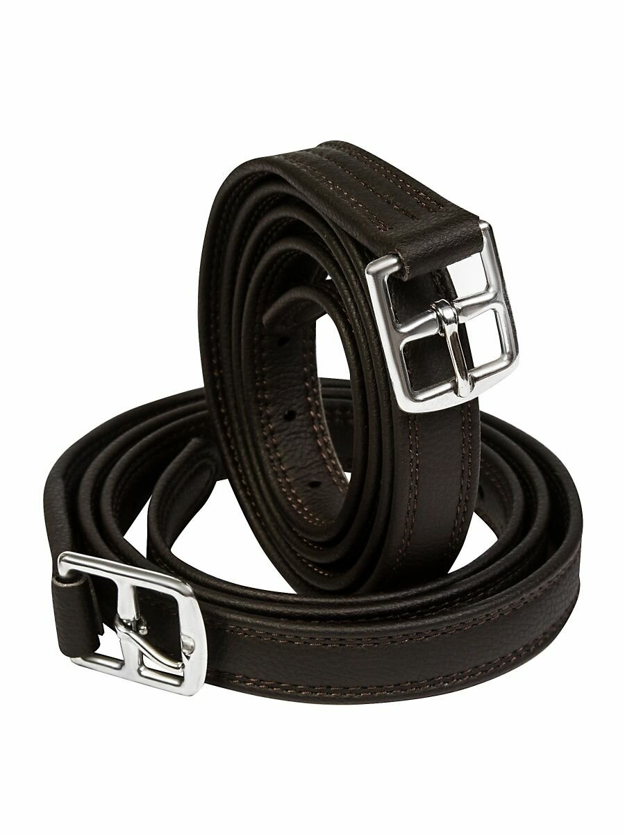 В комплекте идут 2 путлища длиной 150 см каждый. Ширина каждого ремня составляет 2,5 см, что обеспечивает комфортное и надежное крепление на ноге лошади.