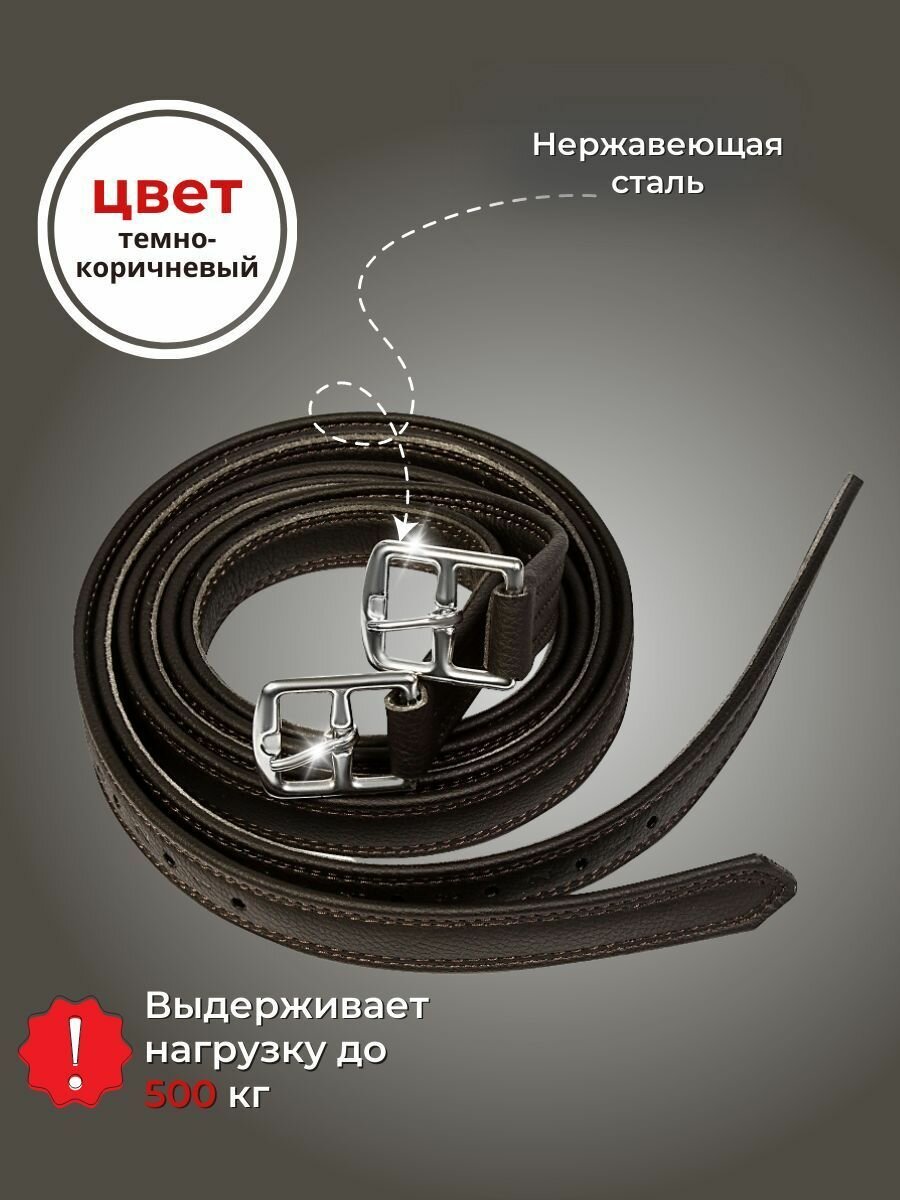 Путлища изготовлены из искусственной кожи, которая имитирует натуральную кожу и обладает высокой прочностью. Фурнитура из нержавеющей стали добавляет изделию долговечность и устойчивость к износу.