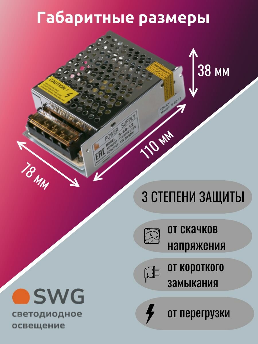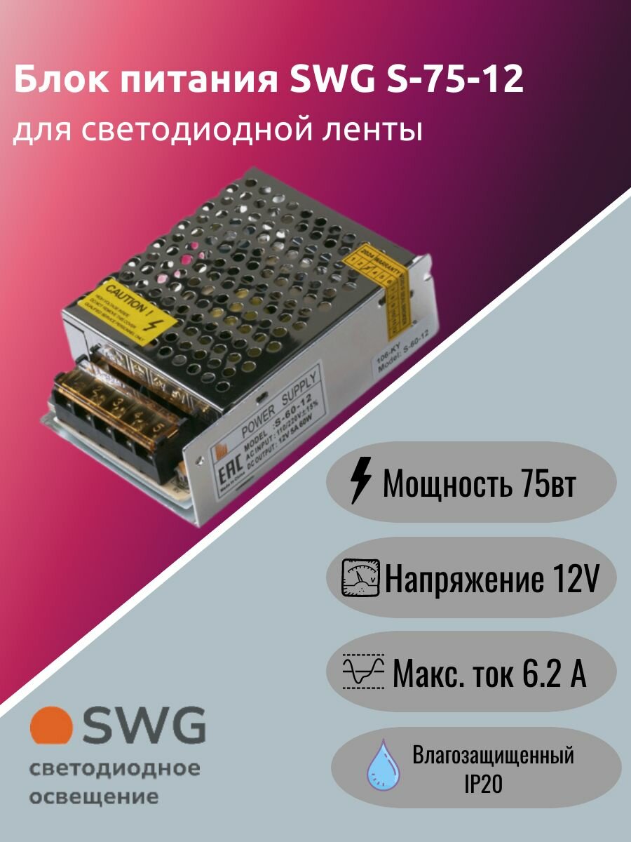 SWG Блок питания светодиодной ленты сетка, S-75-12, 12В, 75Вт: сравнение цен, характеристики, фото, актуальное наличие и цены.