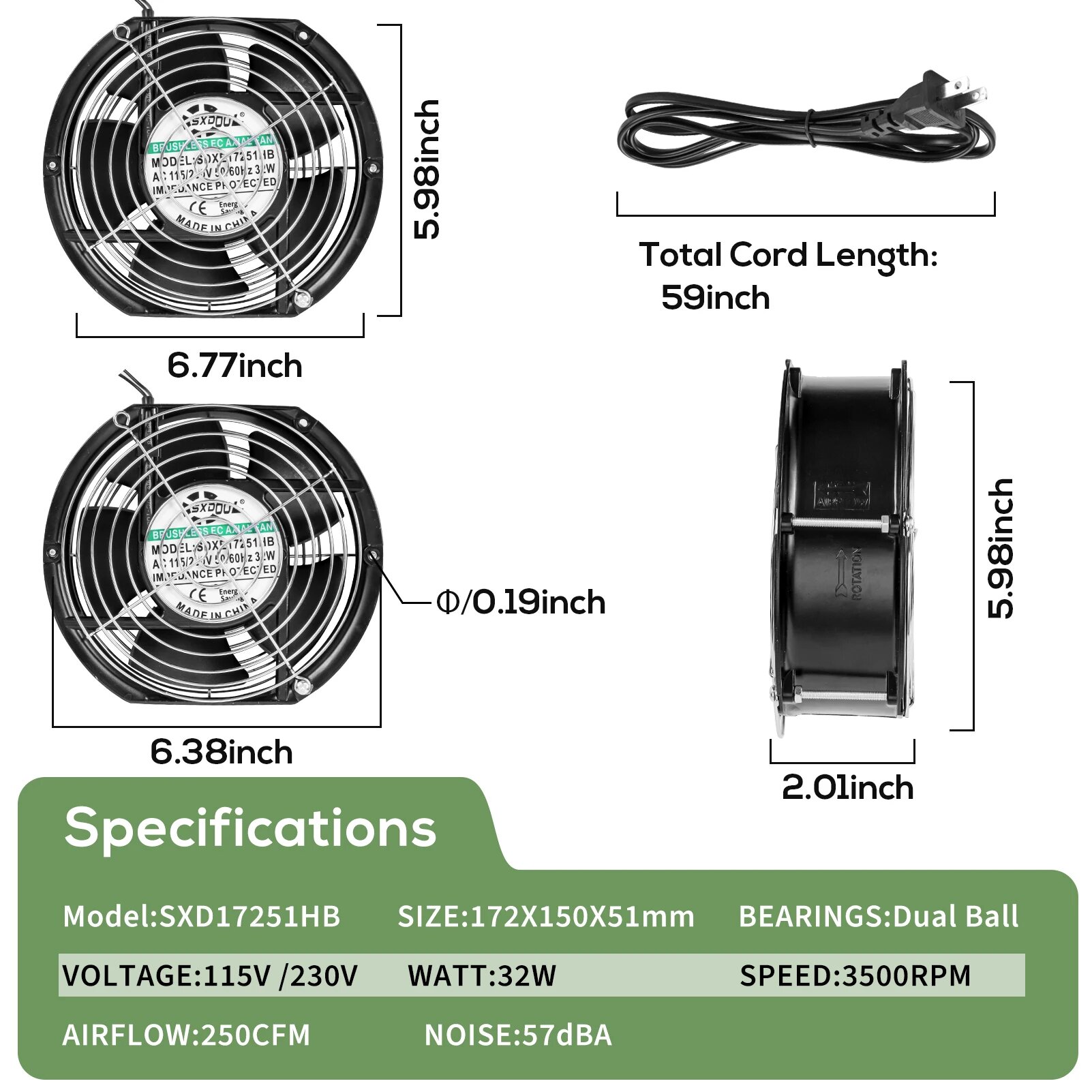 SXD17251HB 172 мм охлаждающий вентилятор EC 115 В/230 В с двумя шариками 250 куб. футов в минуту высокоскоростное промышленное охлаждение для силового оборудования сервера шкафа: сравнение цен, характеристики, фото, актуальное наличие и цены.