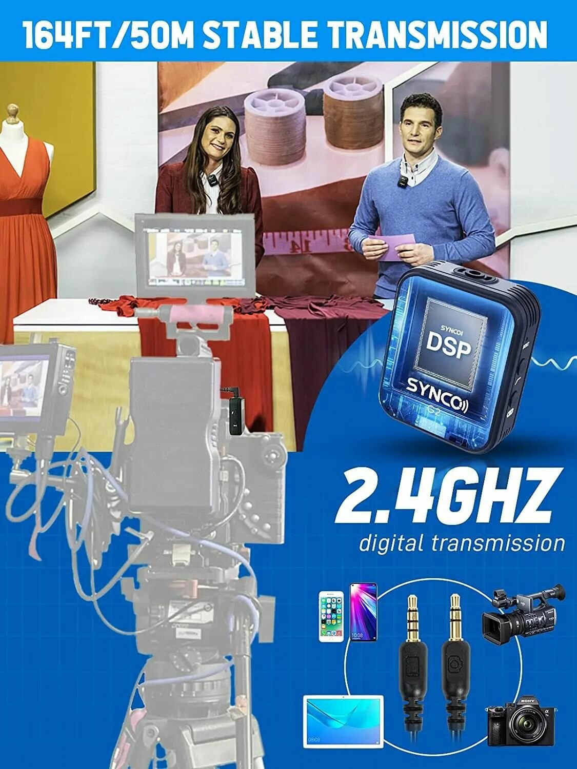 SYNCO G2(A1) Беспроводная петличная микрофонная система 1 передатчик и 1 приемник Петличный микрофон 230 футов/70 м: сравнение цен, характеристики, фото, актуальное наличие и цены.