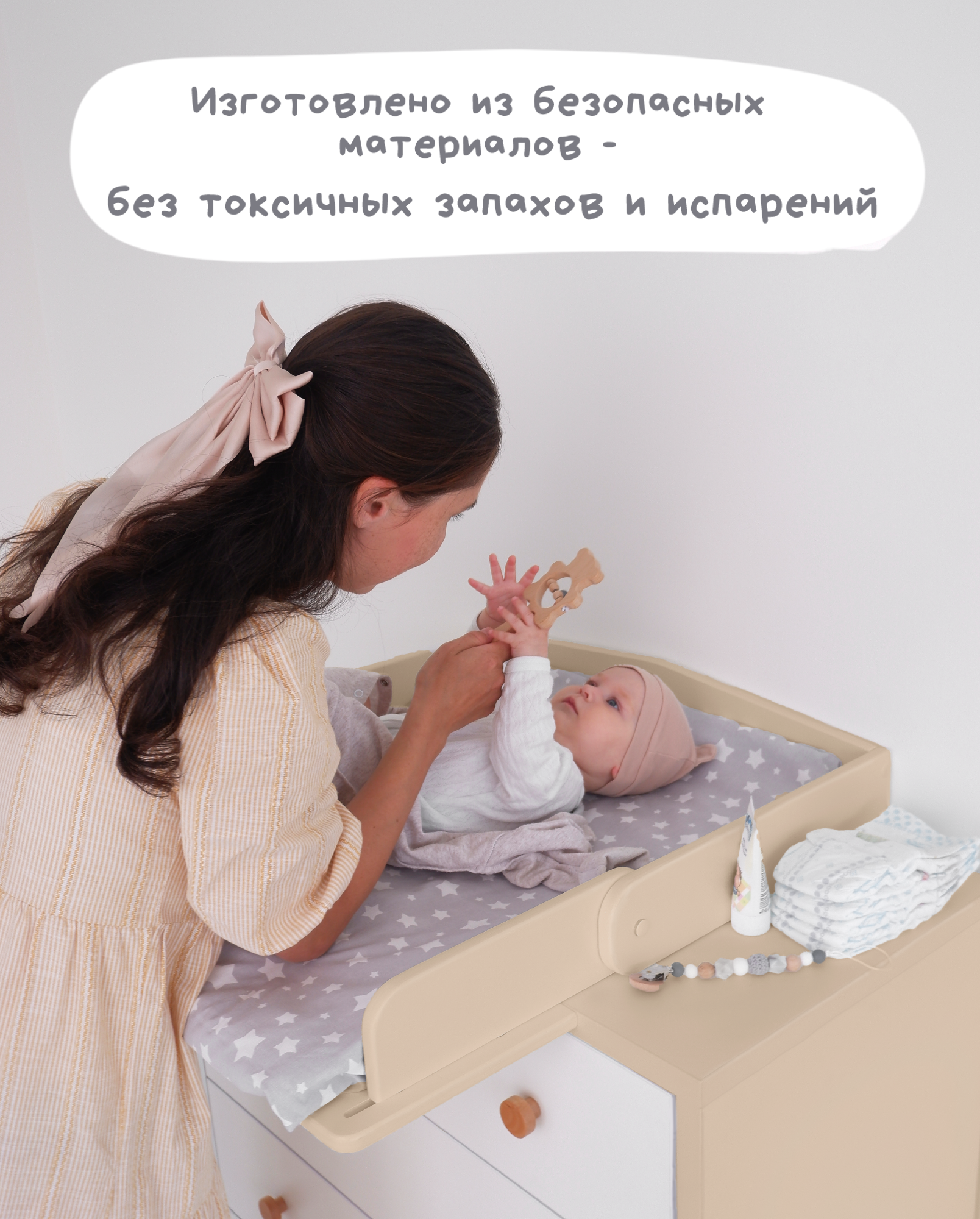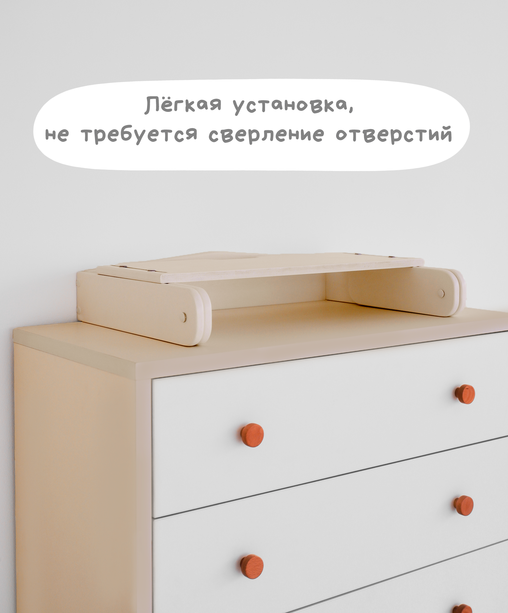 Съёмная пеленальная доска временно превратит ваш обычный комод в пеленальный, не испортив его внешний вид.