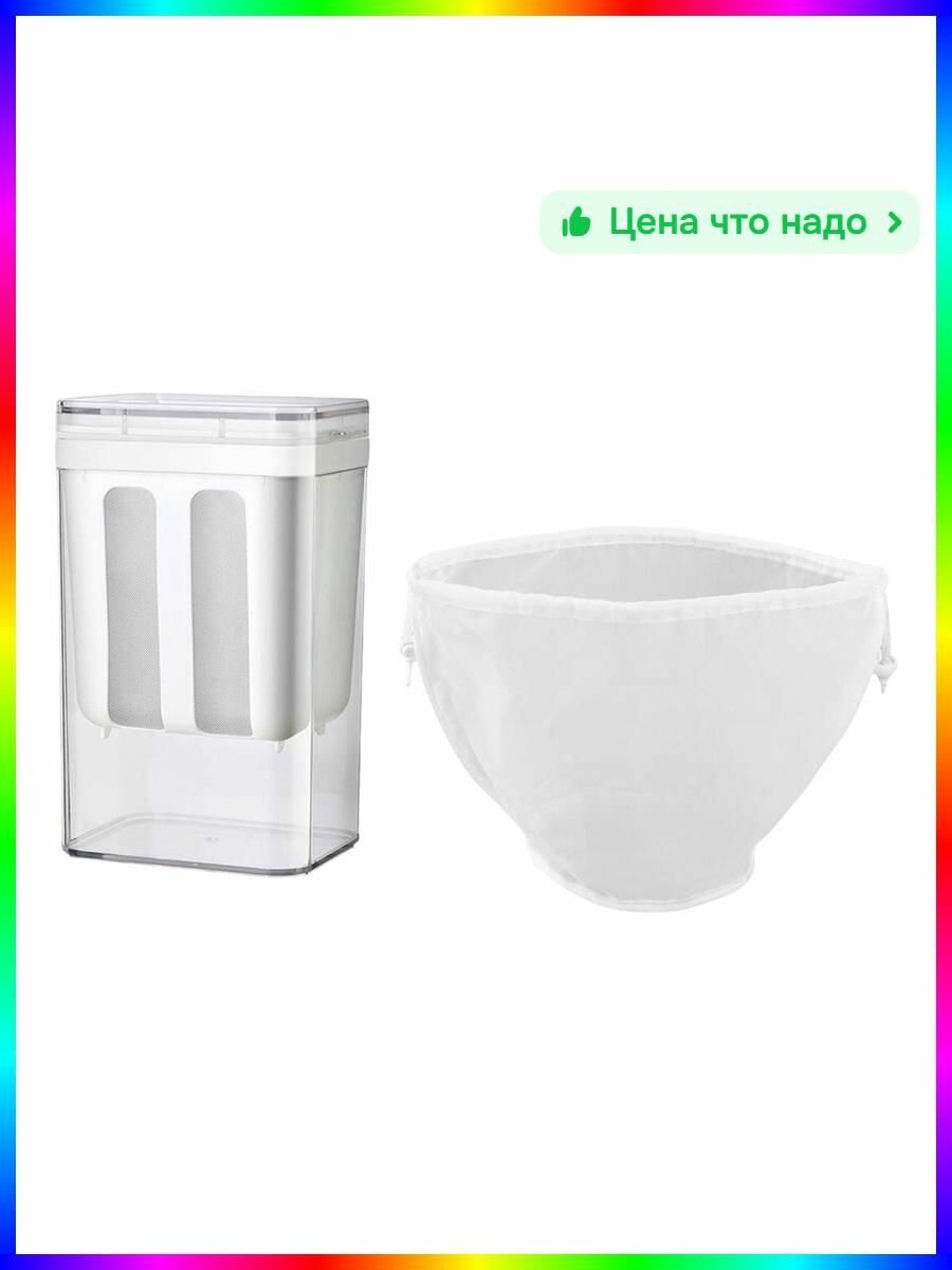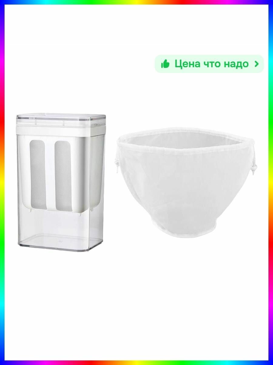 Создавайте вкусный и густой греческий йогурт в домашних условиях! Удобная сыроварня эффективно отделяет сыворотку, обеспечивая идеальную кремовую текстуру. Этот фильтр предназначен для приготовления густого и насыщенного греческого йогурта в домашних условиях. Он эффективно отделяет сыворотку, делая текстуру йогурта более плотной и кремовой, похожей на сыр. Изделие состоит из внешнего прозрачного контей