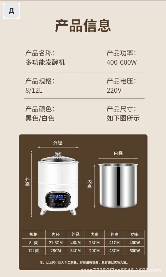 ▶Автоматическая интеллектуальная машина для йогурта Venus, ферментер для десертного вина, риса, вина, является многофункциональным оборудованием для ферментации двойного назначения для домашнего и коммерческого использования. Стеклянная крышка и вкладыш из нержавеющей стали приняты для обеспечения безопасности пищевых продуктов и гигиены. Оборудование оснащено компьютерной панелью с ЧПУ, которая проста в эксплуатации, имеет интеллектуальное время и постоянную температуру, а также сохраняет стабильный процесс ферментации. Мощность 400 Вт и напряжение 220 В могут соответствовать различным требованиям пивоварения. ▶Эта машина йогурта может не только сделать традиционный йогурт, но также быть использована для того чтобы заквашивать энзимы, натто, уксус плода, етк. Кроме того, машины можно использовать для брожения теплого вина, приготовления лапши и даже приготовления рисового вина. Многофункциональный дизайн Отвечает ежедневным разнообразным потребностям семей. ▶Полностью автоматическая интеллектуальная машина для йогурта Venus, ферментер для десертного вина, риса, вина с изоляцией, может поддерживать непрерывное брожение продуктов при соответствующей температуре. С ним легко работать как для домашнего, так и для коммерческого использования. Хотите ли вы домашний вкусный йогурт или наслаждайтесь домашним рисом, этот многофункциональный ферментер может удовлетворить ваши потребности. Позвольте вам насладиться домашней едой на кончике вашего языка. OZONID:2606280