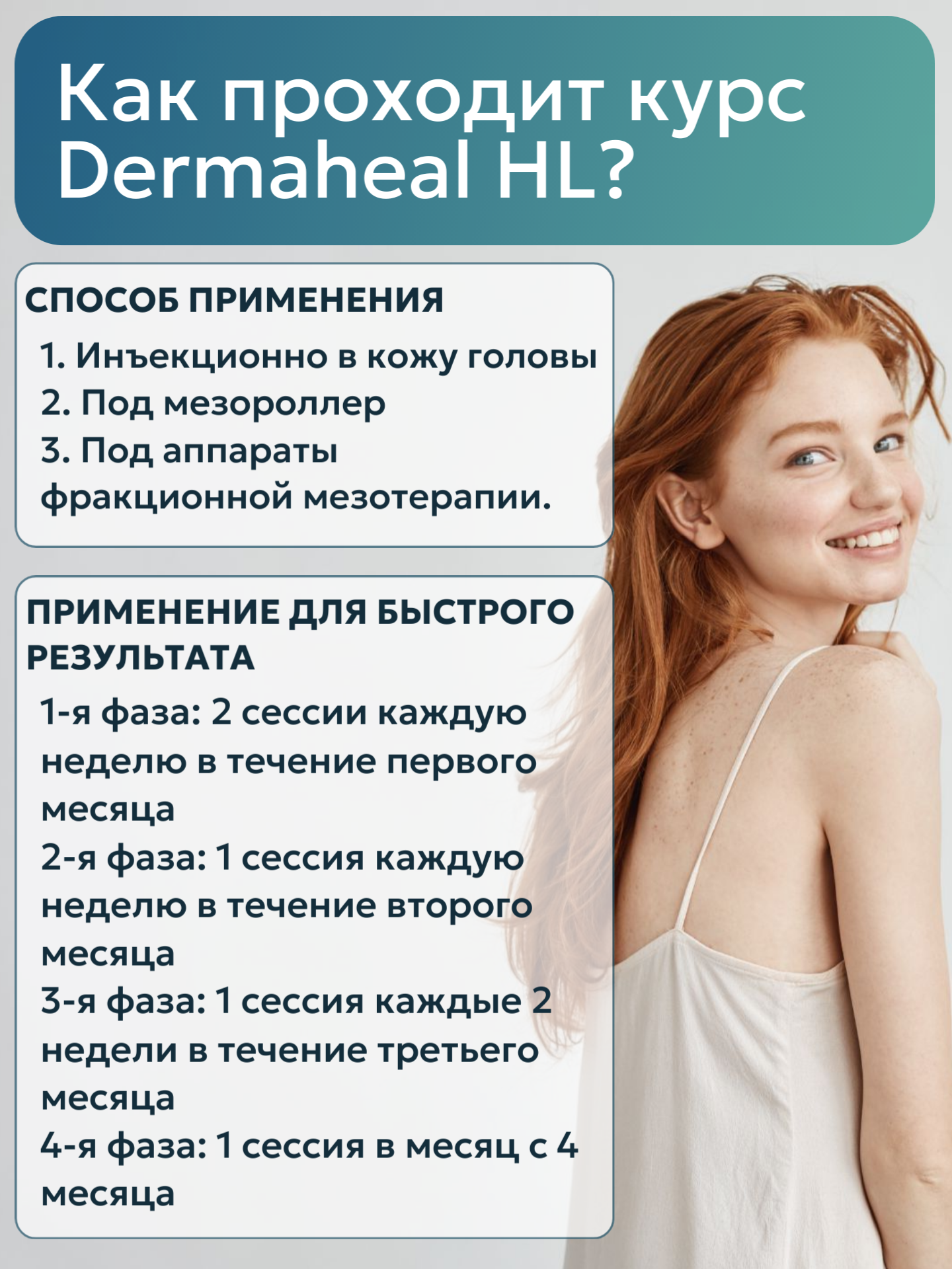 Эта инновационная сыворотка разработана для активации роста ваших волос и улучшения состояния кожи головы. Подходит для лечения ломких, тонких и поврежденных волос как у мужчин, так и у женщин. Также Дермахил HL поможет отрастить красивые, здоровые и длинные волосы. Он успешно справляется с облысением кожи головы, аллопецией и плешью. Курс мезотерапии с Dermaheal HL восстановит ваши волосы и кожу головы, придаст им невероятную силу, объем и густоту, делая их здоровыми и красивыми – без единого секущегося кончика.