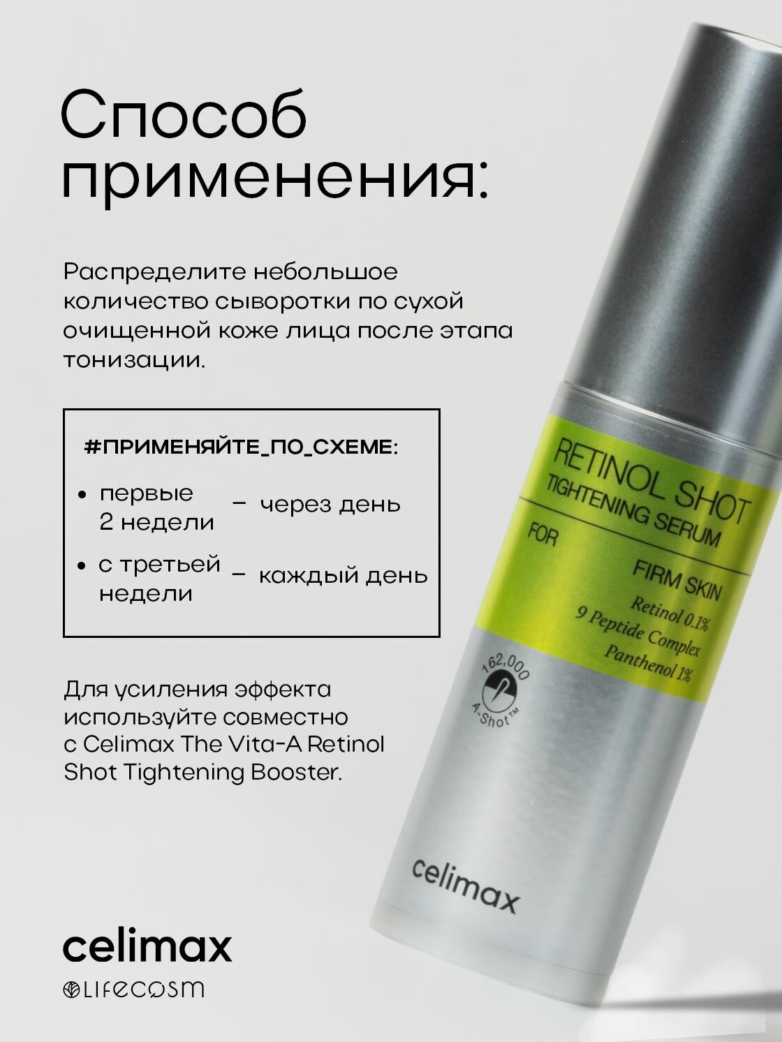 CELIMAX THE VITA-A RETINOL SHOT TIGHTENING SERUM - Сыворотка с микроиглами и ретинолом для упругости кожи и уменьшения видимости пор.