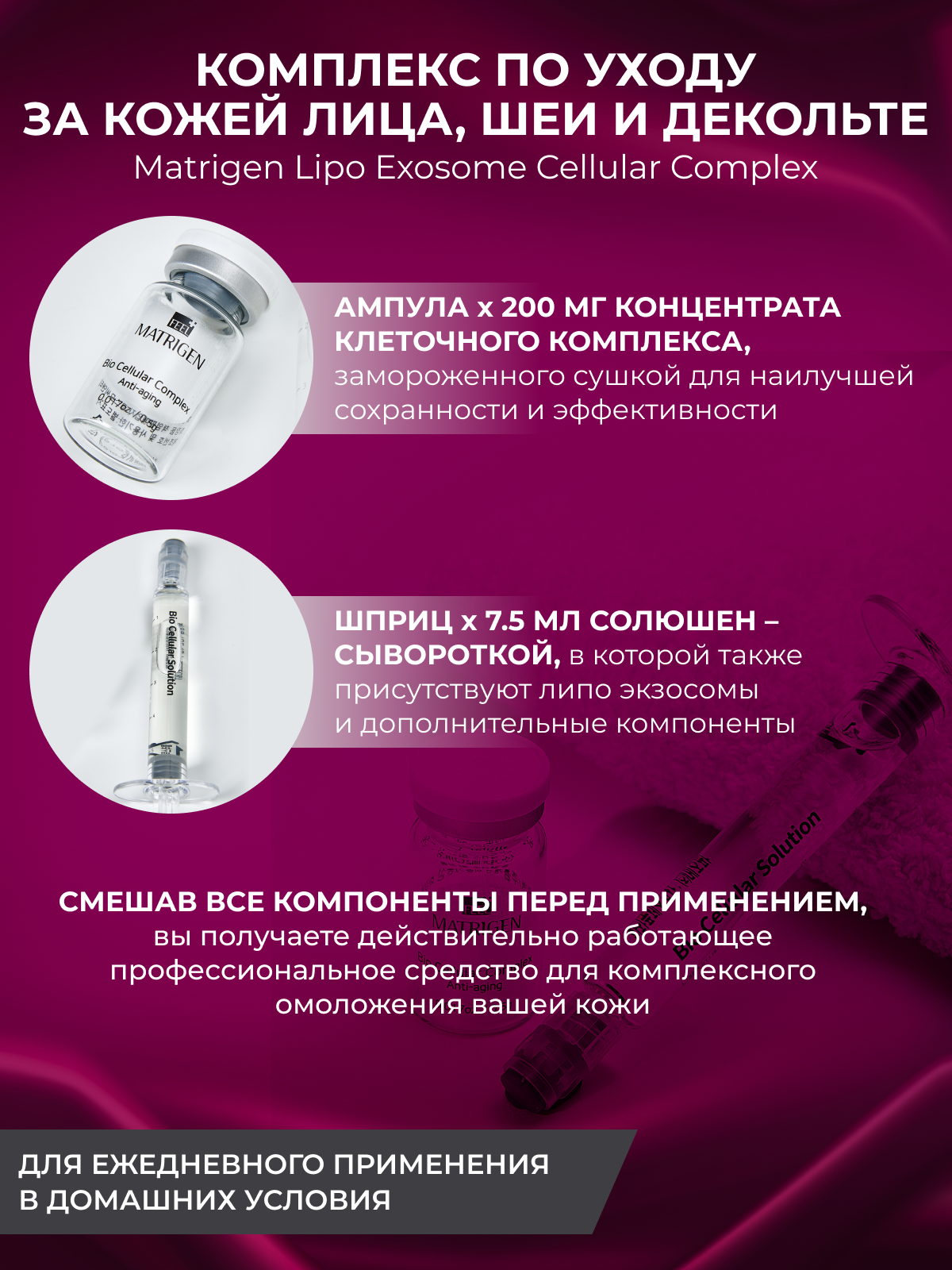 Купить Сыворотка для лица с пептидами Matrigen Lipo Exosome Cellular Complex от морщин с доставкой по всей России.