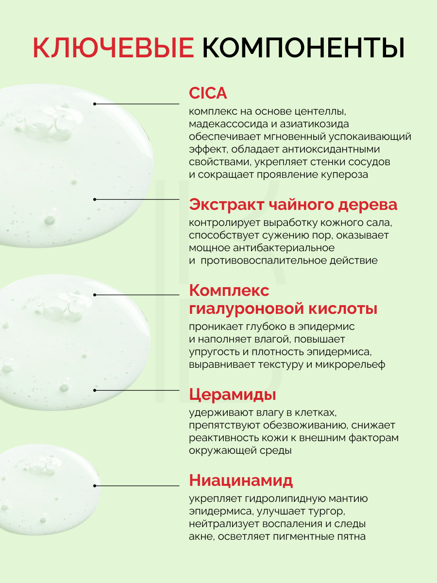 | Активный ингредиент | AHA-кислоты, аденозин, аллантоин, бета-глюкан, бифидобактерии, витамин B3 (ниацинамид), витамин E, витамины, гиалуроновая кислота, гликолевая кислота, керамиды, лактобактерии, минералы, пантенол (провитамин B5), пептиды, пробиотики, салициловая кислота, сквалан, церамиды |