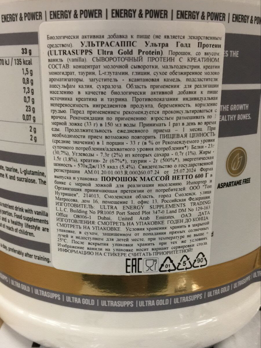 Сывороточный протеин UltraSupps Ultra Gold Protein Whey Formula — 600 г, ваниль: сравнение цен, характеристики, фото, актуальное наличие и цены.