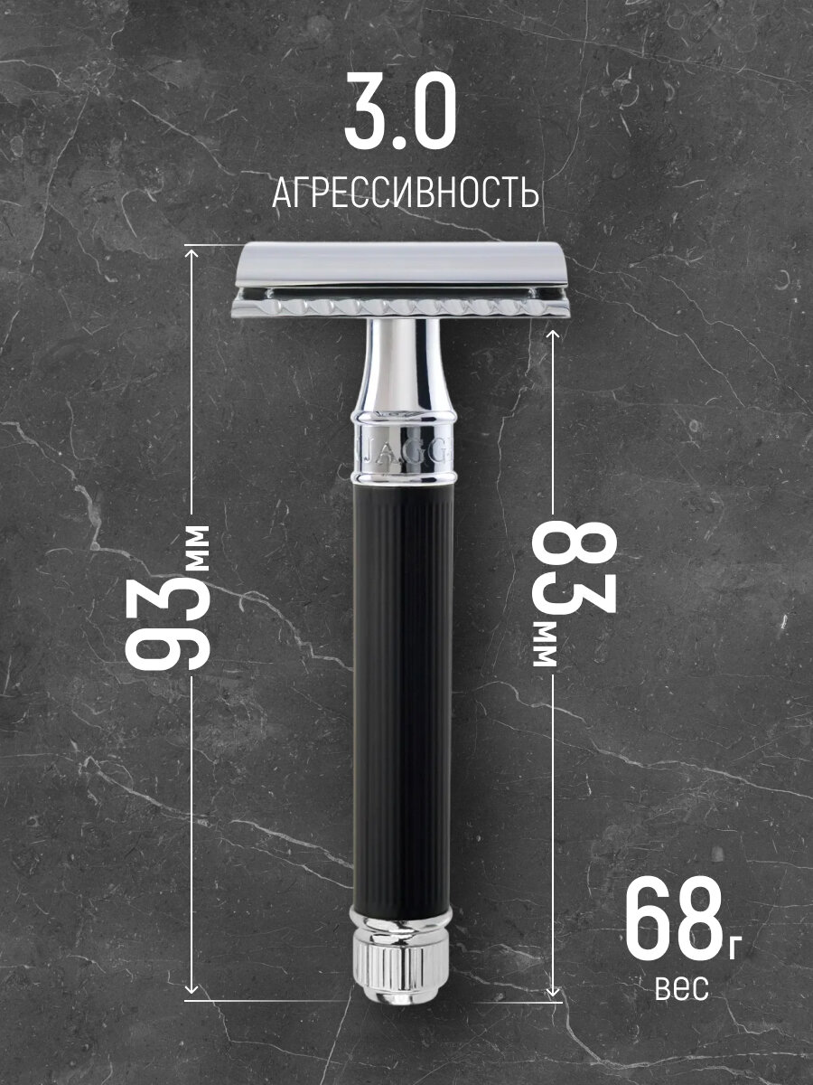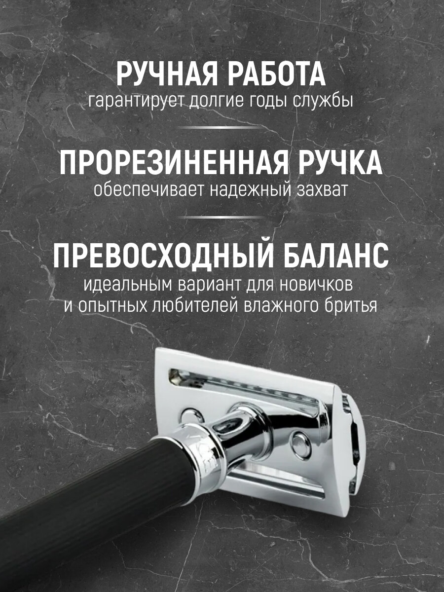 Бритвенный станок T-образный DE86RC14BL создан одной из самых известных британских компаний Edwin Jagger, которая входит в состав брендов мировых лидеров по производству косметических товаров для бритья. Продукт представляет собой безопасную двустороннюю Т-образную бритву с хромированной точной DE головкой с закрытым гребнем Closed Comb, обеспечивающей безопасное и комфортное бритьё. Металлическая ручка оснащена прорезиненной вставкой чёрного цвета, благодаря которой бритву можно надёжно удерживать даже мокрой рукой. Ручка отделана хромированными вставками, которые придают бритве элегантный внешний вид. Данный прибор рекомендован в том числе и для новичков, которые только пробуют бриться такого типа станками, так как угол наклона головки обеспечивает щадящее бритьё.