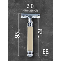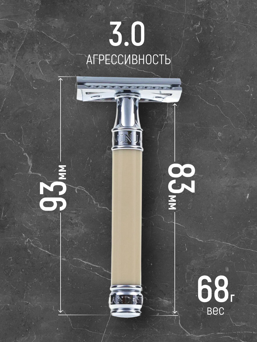 Станок Edwin Jagger DE87BL предназначен для ежедневного использования. Главным его достоинством является отсутствие зазора и выноса лезвия, что обеспечивает качественное и безопасное бритье волос различной степени жесткости. Изделие выполнено в классическом стиле, металлические части из латуни полностью хромированные, надежно защищают бритву от ржавчины. Также можно использовать универсальные лезвия других компаний. Станок аккуратно упакован в коробку. Ознакомиться с документами на изделие можно у менеджера или в разделе Сертификаты. Применение: Бритва Edwin Jagger предназначена для юношей и мужчин всех возрастов. Перед бритьем рекомендуется распарить щетину горячей водой или полотенцем. Затем нужно воспользоваться кремом или пеной для бритья, чтобы лезвие мягко скользило по коже. После бриться на кожу следует нанести смягчающие косметические средства. Дополнительно: Купить станок для бритья рекомендовано в специализированных магазинах. В комплект бритвы входит набор лезвий в количестве 1 штуки. Размеры 17 см – длина, 3 см – ширина, 4 см – высота. Лезвия изготавливаются из титана, нержавеющей стали, имеют долгий срок использования. Ручка выполнена из акрила, окрашенного в цвет слоновой кости.