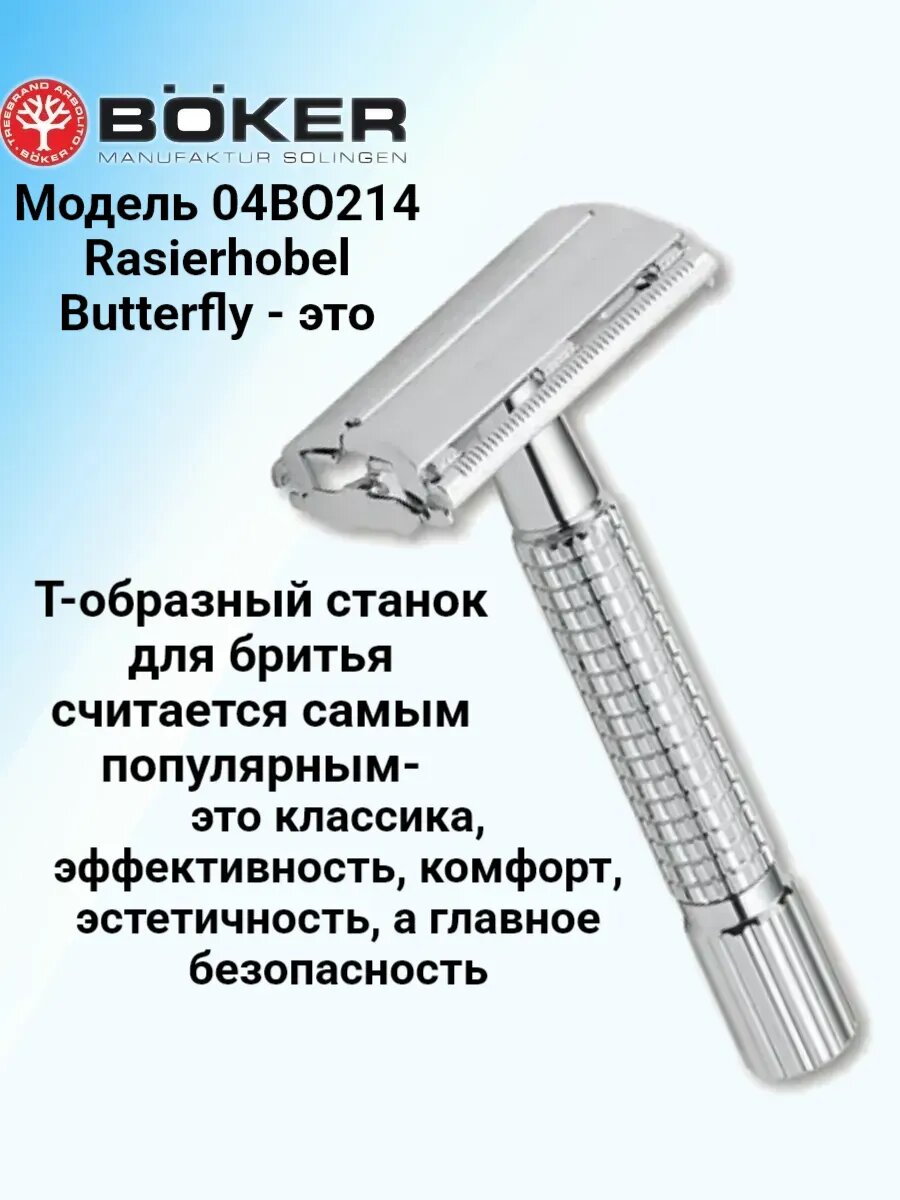 Купить Т-образный бритвенный станок Boker Butterfly 04BO214, из нержавеющей стали, многоразовый с доставкой по всей России. Т-образный бритвенный станок Boker Butterfly 04BO214, из нержавеющей стали, многоразовый: сравнение цен, характеристики, фото, актуальное наличие и цены.