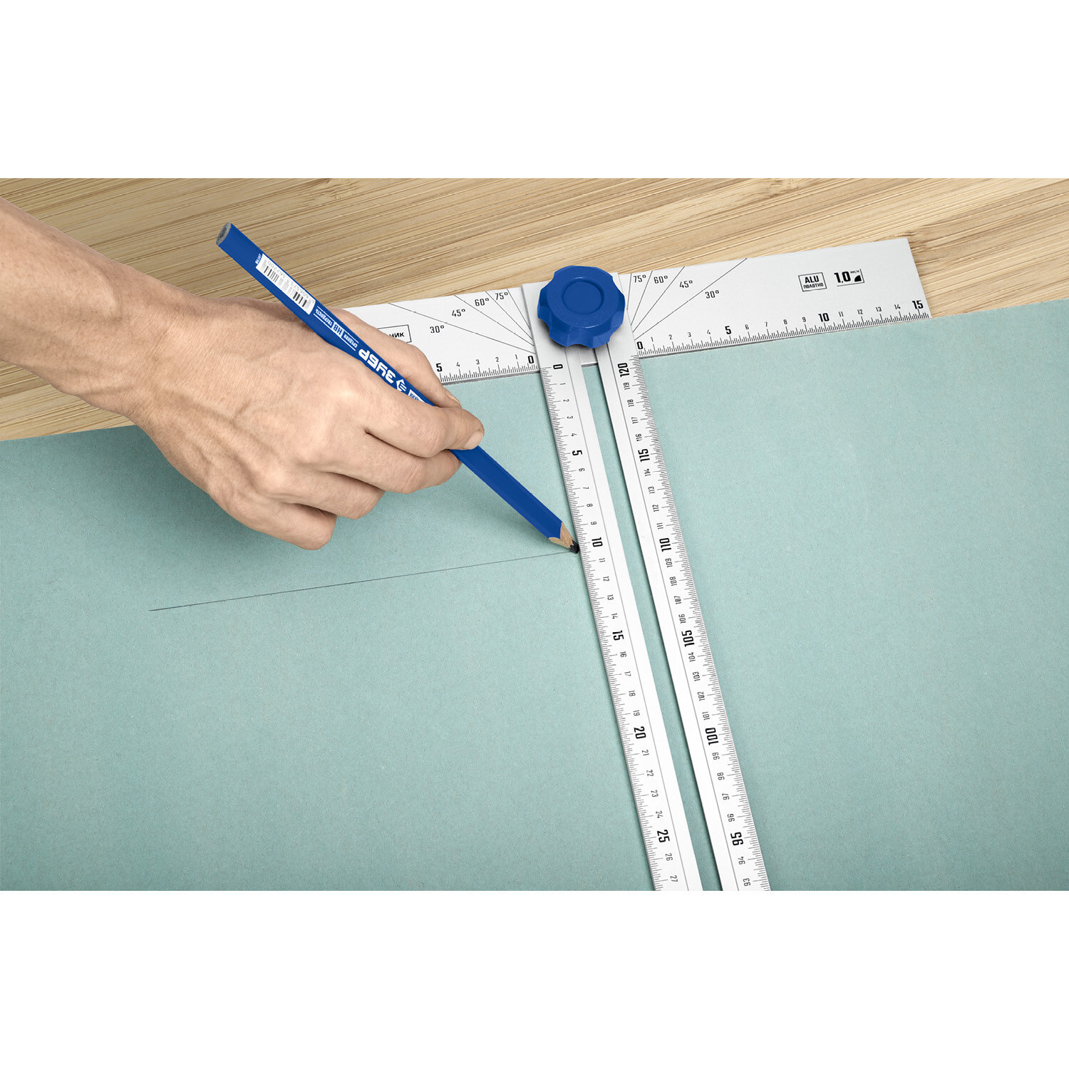 Специальный Т-угольник идеально подходит для реза гипсокартона и листовых материалов.