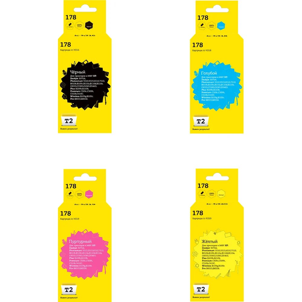 Купить T2 Комплект картриджей (CB316HE/CB318HE/CB319HE/CB320HE) для HP 178: черный, голубой, пурпурный, желтый IC-H178_MP с доставкой по всей России.