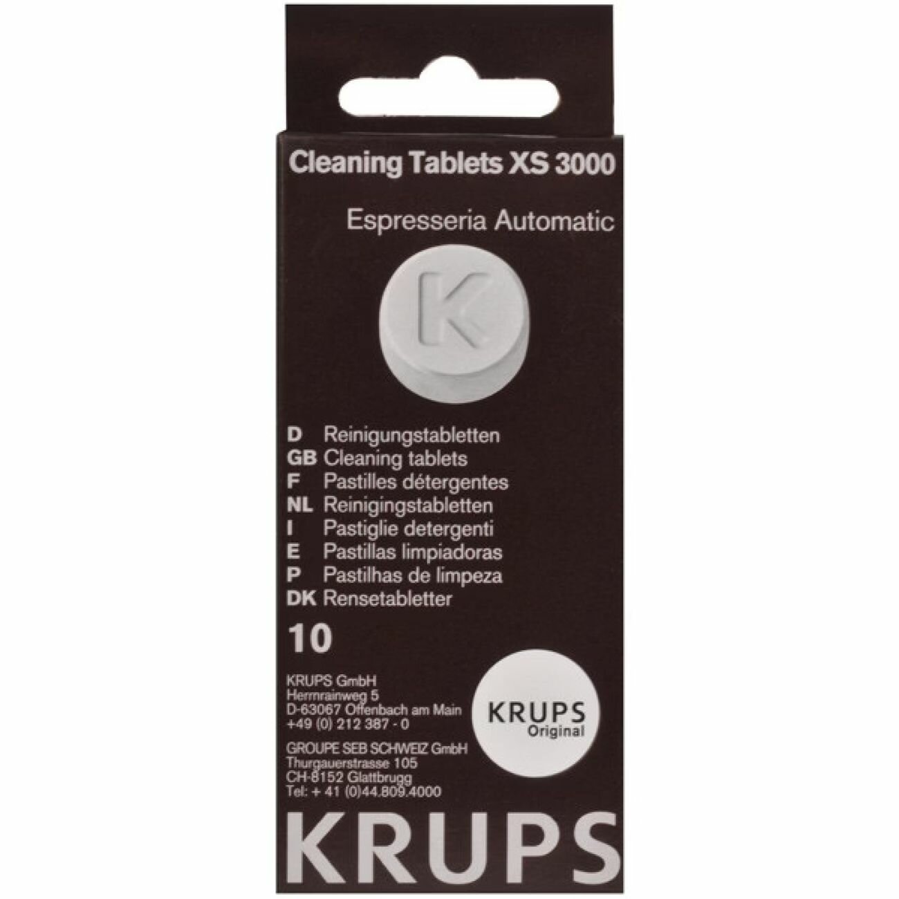 Кофемашина каждый день готовит для Вас вкусный ароматный кофе. Изо дня в день в ней скапливаются масла, накипь, жир и отложения. Как эффективно очистить кофемашину от кофейных масел, следов жира, накипи и других минеральных загрязнений ! На помощь придут таблетки KRUPS для удаления кофейных масел, очистки систем кофемашины. Krups - чистящее средство для автоматических кофемашин в таблетках. Чистящие таблетки крупс эффективно удаляют следы извести и пригоревшего кофе. Чистящее средство Krups XS3000 для чистки кофемашин эффективно промоет заварочный блок, избавит от кофейного масла и известковых отложений. Одна упаковка состоит из 10 очищающих таблеток. 1 таблетка krups = 1 очистка кофемашины (1 применение). Таблетки полностью совместимы с программой автоматической чистки кофемашины. Таблетки чистящие **Krups XS 3000** предназначены для быстрого ухода за эспрессо-машинами в домашних условиях. Средство позволяет устранить скопившиеся кофейные масла и жир в гидросистеме, а также удалить следы извести и пригоревших частиц с внутренних элементов устройства. Это не только продлевает срок службы машины, но и способствует более насыщенному вкусу напитка. Таблетки представлены в упаковке по 10 штук и предназначены для плановой очистки автоматических моделей KRUPS Espresseria Automatic и Barista. Средство помещается в резервуар для молотого кофе и проходит по всем каналам. Когда капсула полностью растворяется, из носика выступает мыльный раствор.