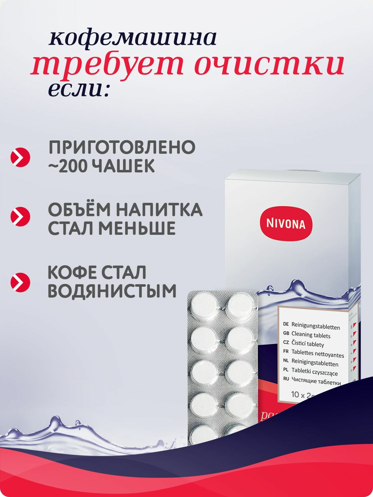 Таблетки для чистки гидросистемы Nivona NIRT 701, очистка от примесей и кофейных масел, 10 шт: сравнение цен, характеристики, фото, актуальное наличие и цены.