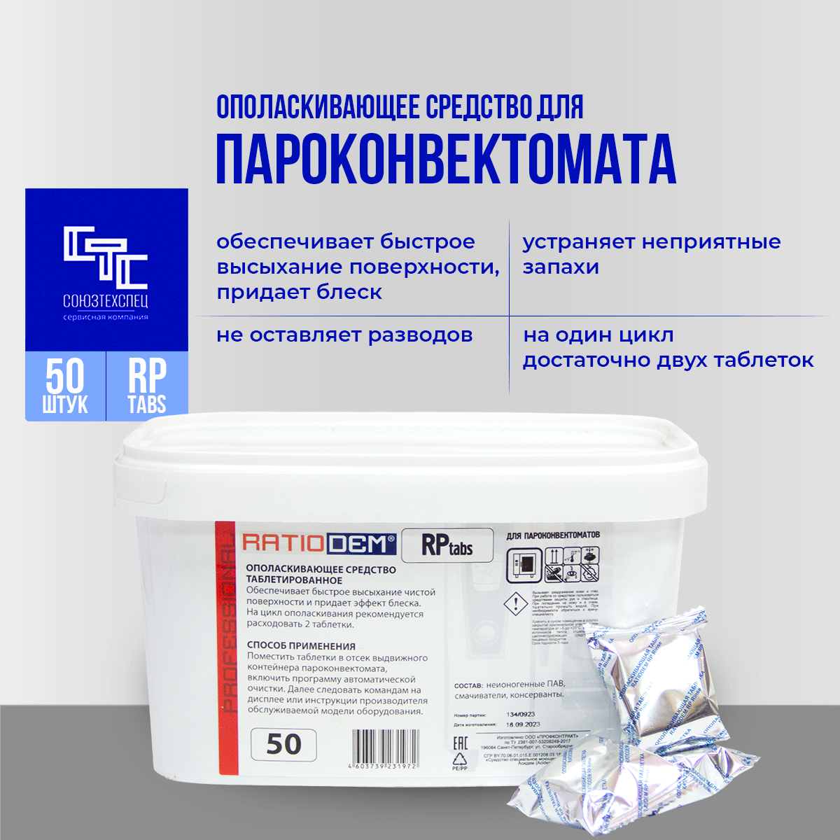 Ополаскивающие таблетки для пароконвектоматов RatioDem RP tabs 50, ведро 50шт.: сравнение цен, характеристики, фото, актуальное наличие и цены.