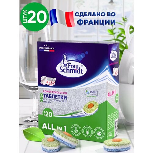 Инновационные, экологичные и высокотехнологичные таблетки для посудомоечной машины Frau Schmidt ЭКО с применением технологии STREAMTAB - бесфосфатные таблетки в водорастворимой оболочке. Таблетки произведены во Франции. Благодаря своей уникальной формуле, отличительная особенность этих таблеток - они оптимально подходят для короткого (низкотемпературного) цикла, обеспечивая при этом высочайшее качество мойки. Таблетки Frau Schmidt абсолютно безопасны для человека, в том числе и для детей, так что теперь вы можете смело мыть детскую посуду в посудомоечной машине! Таблетки Frau Schmidt ЭКО не содержат агрессивных ПАВ и фосфатов, полностью смываются с посуды, не оставляя разводов и известкового налета, нейтрализуют запахи. Суперэффективно удаляют жир и стойкие загрязнения даже при низких температурах. В составе таблеток - специальная соль, очиститель и ополаскиватель. Все функции для мытья посуды и эффективной защиты вашей машины - в одной таблетке! Инструкция по применению: - удалить с посуды остатки пищи и загрузить в посудомоечную машину; - положить таблетку в сухой диспенсер для моющих средств; - выбрать подходящую программу мойки и включить посудомоечную машину; - при стандартных загрязнениях посуды использовать температуру 55 гр. цельсия; - при сильных загрязнениях или в случае очень жесткой воды использовать температуру от 65 гр. цельсия; - если жесткость воды превышает 5,4 мг-экв/л может потребоваться соль и ополаскиватель Внимание! Не рекомендуется мыть в посудомоечной машине изделия из алюминия, хрусталя, антикварного или расписного фарфора, изделия с ручками из дерева, кости или пластика. Избегайте соприкосновения изделий из серебра с другими металлами. Посуду из пластика можно мыть в посудомоечной машине, если она изготовлена из термостойкого пластика и на ней имеется соответствующая маркировка.