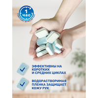 Благодаря водорастворимой пленке, таблетки легко растворяются в воде и обеспечивают быстрое и качественное очищение посуды от различных загрязнений.