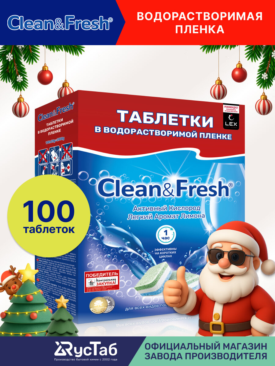 Таблетки для посудомоечных машин Clean & Fresh представляют собой эффективное и безопасное средство для очищения посуды. В упаковке содержится 100 водорастворимых таблеток, что обеспечивает длительный срок использования.