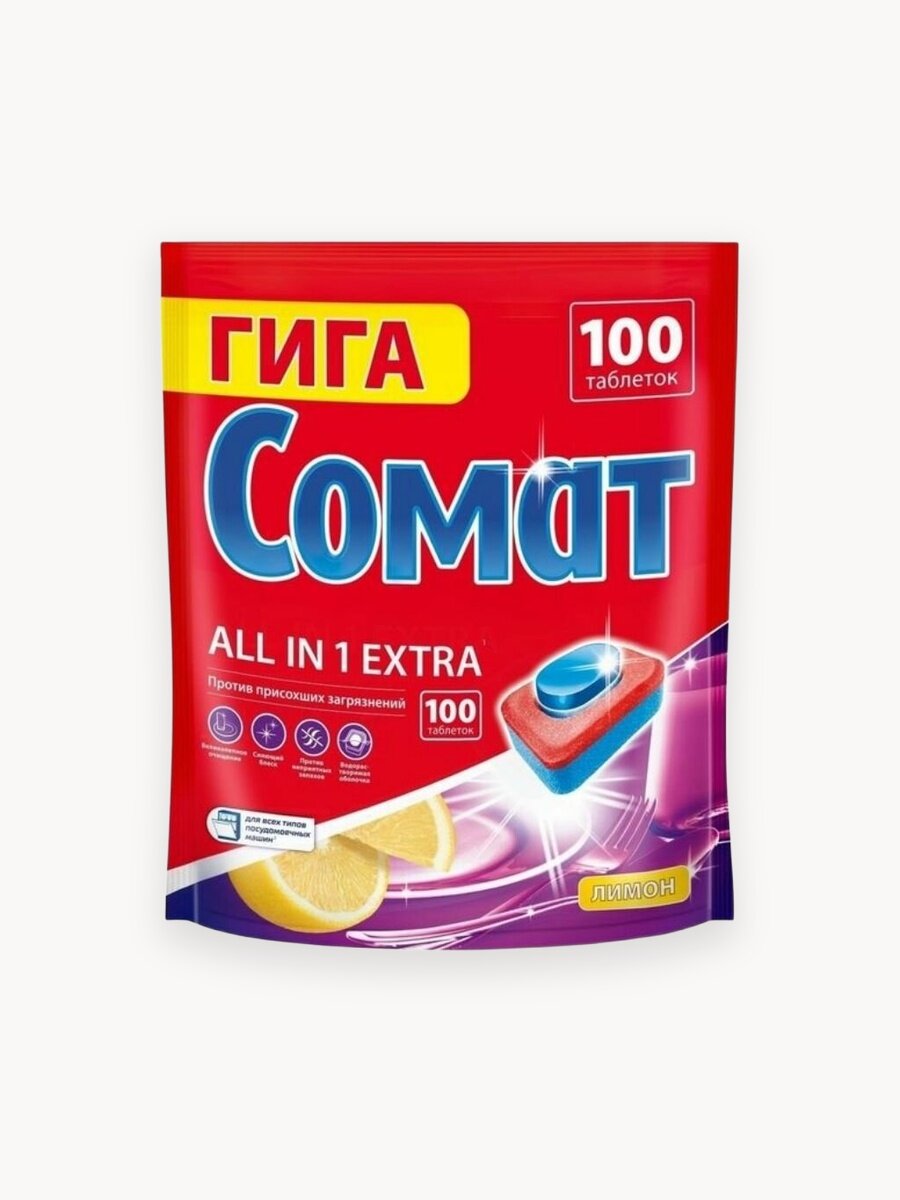 •Сомат Всё в 1 Экстра таблетки для посудомоечной машины 100 шт.