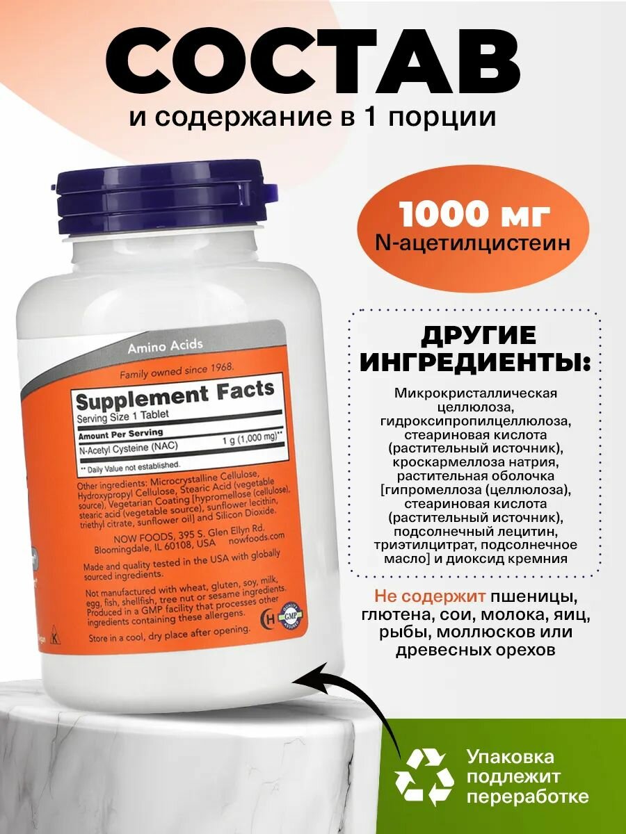 NOW NAC 1000mg, N-Ацетилцистеин, 120 таблеток, Аминокислота, для иммунитета взрослым, для мозга, детокс, антиоксидант: сравнение цен, характеристики, фото, актуальное наличие и цены.