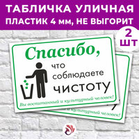Табличка «Спасибо, что соблюдаете чистоту», 45х30см, пластик 4мм, 2 шт.