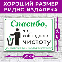 Табличка «Спасибо, что соблюдаете чистоту», 60х40см, пластик 4мм, 3 шт.: сравнение цен, характеристики, фото, актуальное наличие и цены.