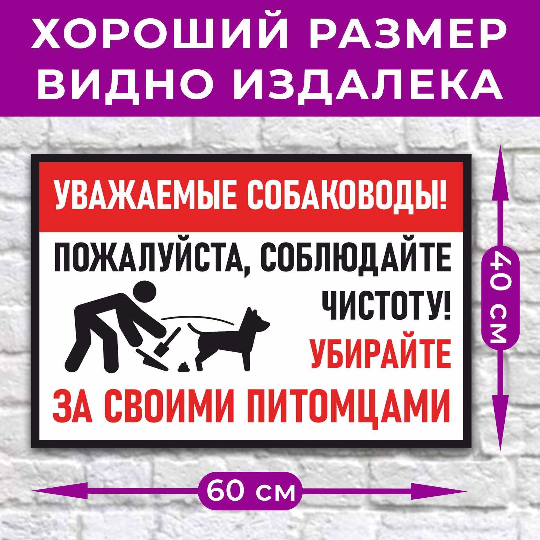 Табличка «Уважаемые собаководы! Пожалуйста, соблюдайте чистоту! Убирайте за своими питомцами», 60х40см, ПВХ 4мм, 1 шт.: сравнение цен, характеристики, фото, актуальное наличие и цены.