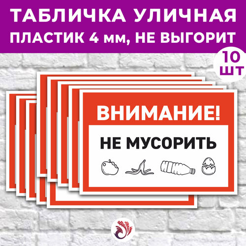 Табличка «Внимание! Не мусорить!», 45х30см, пластик 4мм, 10 шт.: сравнение цен, характеристики, фото, актуальное наличие и цены.