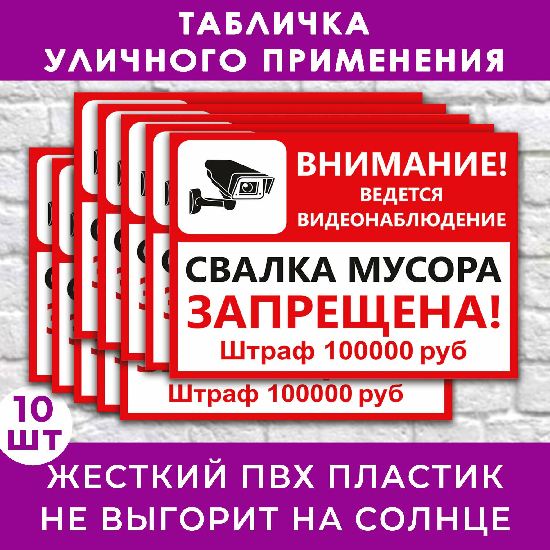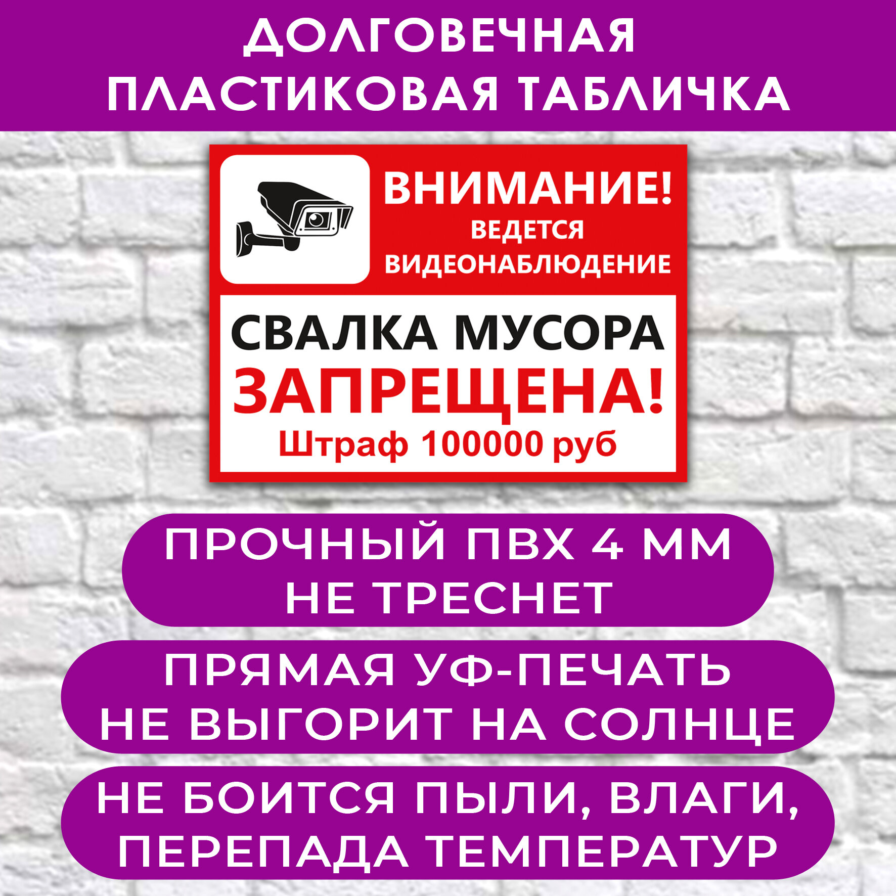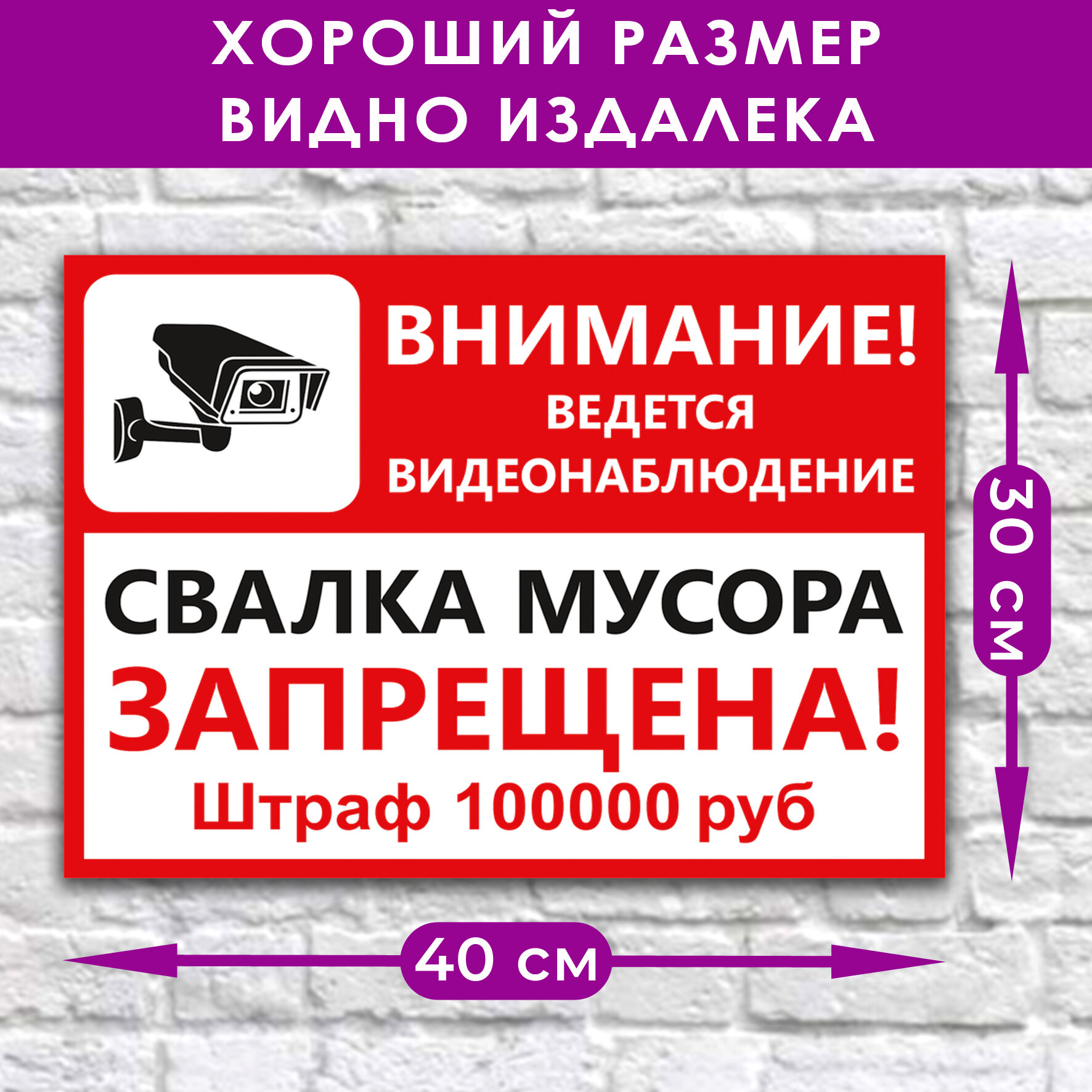 - поможет Вам напомнить посетителям и прохожим об ответственности за незаконную свалку мусора и предупредить потенциальных нарушителей о том, что ведётся видеонаблюдение.