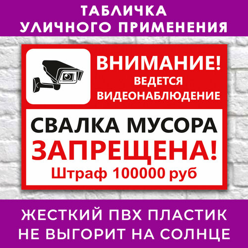 Табличка «Внимание. Ведется видеонаблюдение. Свалка мусора запрещена. Штраф 1000 руб» — 40х30см, пластик 4мм, для улицы, 5 шт.: сравнение цен, характеристики, фото, актуальное наличие и цены.