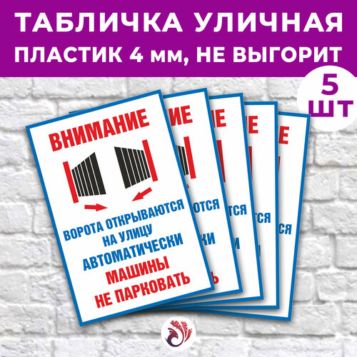 Табличка «Внимание. Ворота открываются автоматически. Машины не парковать», 45х30см, пластик 4мм, 5 шт.: сравнение цен, характеристики, фото, актуальное наличие и цены.