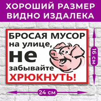 Табличка «Бросая мусор на улице, не забывайте хрюкнуть!», 24х16см, пластик 4мм, 1 шт.: сравнение цен, характеристики, фото, актуальное наличие и цены.