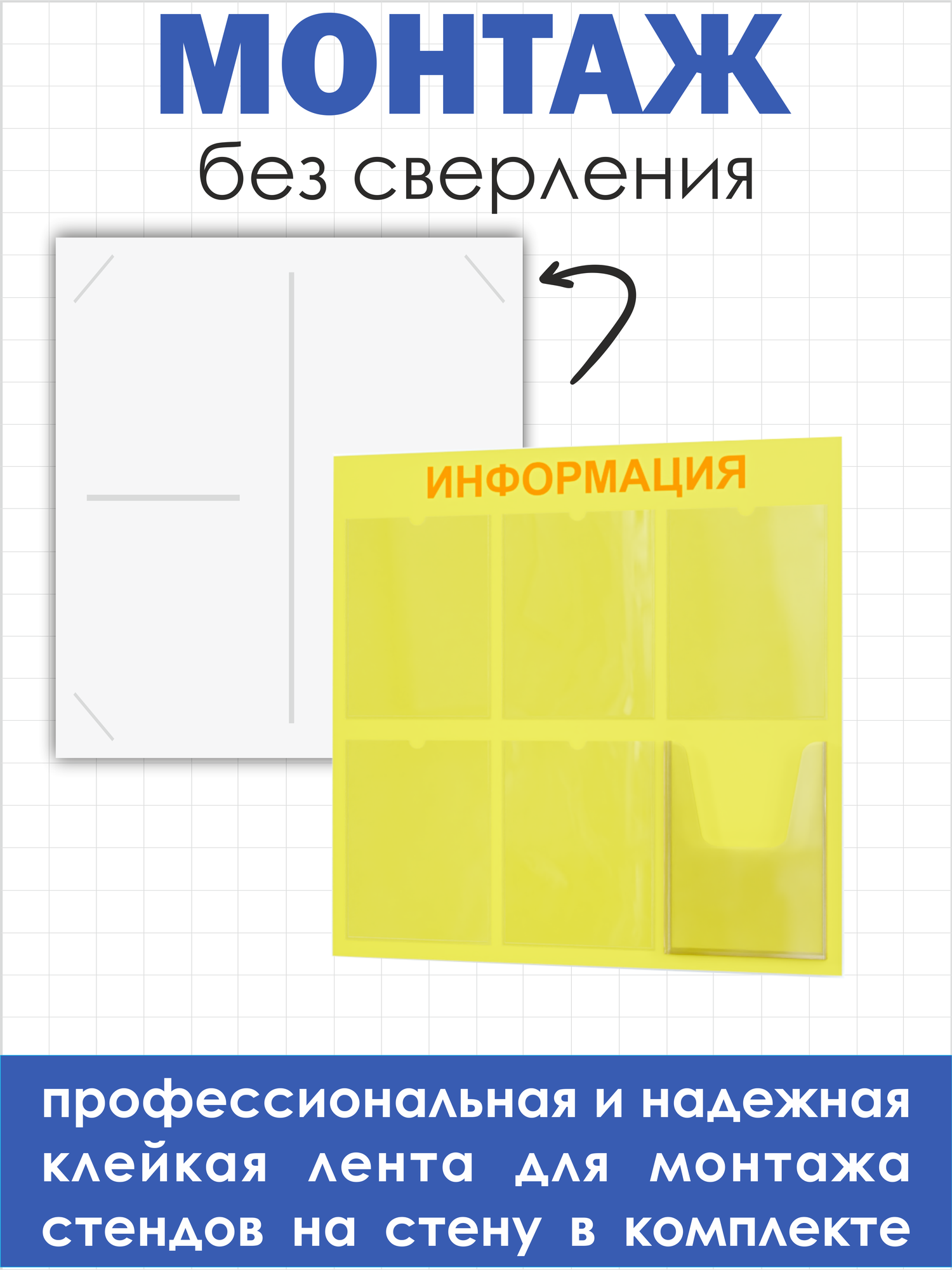 стенд информационный с двусторонним скотчем для монтажа с обратной стороны - 1 шт