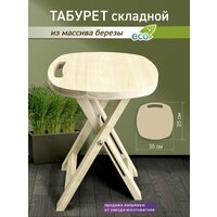 Стул складной, табурет сделан из натурального дерева (береза). Деревянный табурет многофункционален, его можно использовать в качестве прикроватной тумбочки (положить очки, пульт от телевизора), как мини-столик (поставить чашку кофе).