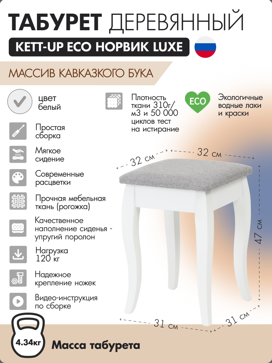 Табурет деревянный KETT-UP ECO норвик LUXE белый / серая рогожка: сравнение цен, характеристики, фото, актуальное наличие и цены.