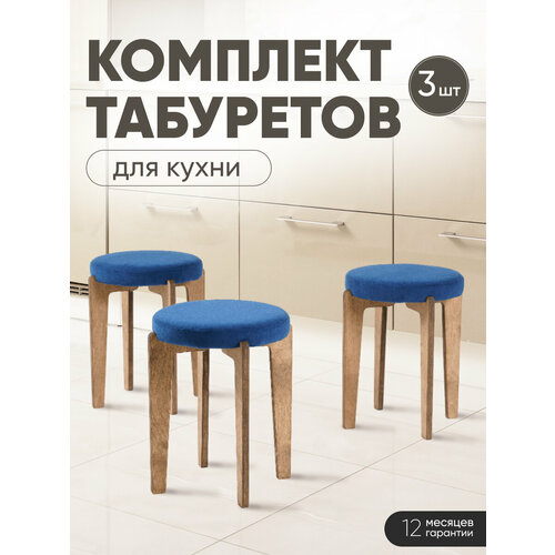 Купить Табурет для кухни мягкий 3шт, Axiomawood, дуб + синий, нагрузка до 120кг с доставкой по всей России.