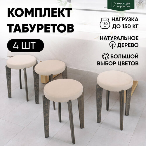 Комплект табуретов из 4шт идеально подойдет для вашей кухни как оригинальный предмет мебели для дома. Наши табуретки универсальной круглой формы украсят обеденную зону, квартиры, дачи или даже офиса. Благодаря своему компактному размеру, и небольшому весу (2.5кг.) они помещаются в любую комнату, не занимая много места, что делает набор легким в использовании и хранении. Высококачественные материалы нашего табурета: Велюр - износостойкая ткань, обеспечивает долговечность и простоту ухода методом сухой или влажной чистки. Наполнитель - высокий поролон предоставляет максимальный комфорт и поддержку. Красивая обивка и прочный каркас придают не только удобство, но и стиль в декоре. Деревянное основание стула выдерживает нагрузку до 120кг. Ножки не потеряют форму и нет риска что они разъедутся, в отличие от металлических. Простая сборка - необходимо только прикрепить сидушку к ножкам. Ножки оснащены мягкими накладками, которые защитят напольное покрытие от повреждений и царапин. Эргономичная высота удобна для стандартного кухонного стола. Табурет подойдет для прихожей, коридора, гостиной или для балкона, лоджии. Он создаст уютную обстановку у туалетного столика. Широкая цветовая гамма сочетания ножек и сидений позволяет использовать в различных дизайнах интерьера: классический, скандинавский, лофт, минимализм.