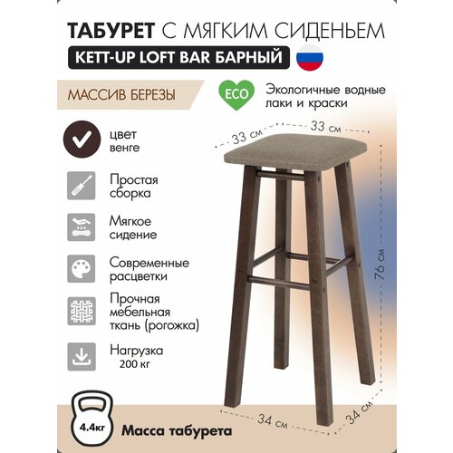 Табурет барный KETT-UP ECO LOFT BAR деревянный с мягким сиденьем - это современный табурет самого высокого качества. Наша задача была произвести крепкий, надежный и красивый барный табурет, который смог бы гармонично вписаться в любой интерьер от доброй классики до современного стиля. Стул барный деревянный KETT-UP ECO LOFT BAR настоящий силач – он готов выдержать не менее 200кг! Вы можете раскачиваться на ножках, даже сесть на него всей дружной семье – ему все по плечу!